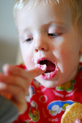 Here's my little Valentine! We couldn't say it was Valentine's Day without doing sugar cookies and Eli helped me decorate them!